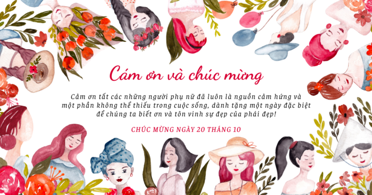 Nhân ngày 20/10, xin gửi lời chúc tốt đẹp nhất đến tất cả phụ nữ Việt Nam. Chúc các bạn luôn xinh đẹp, hạnh phúc và thành công. Chúc các bạn luôn giữ gìn và phát huy những giá trị truyền thống tốt đẹp của người phụ nữ Việt Nam. Và hơn hết, chúc các bạn luôn mạnh khỏe, tự tin để vượt qua mọi khó khăn, thử thách trên con đường phía trước.