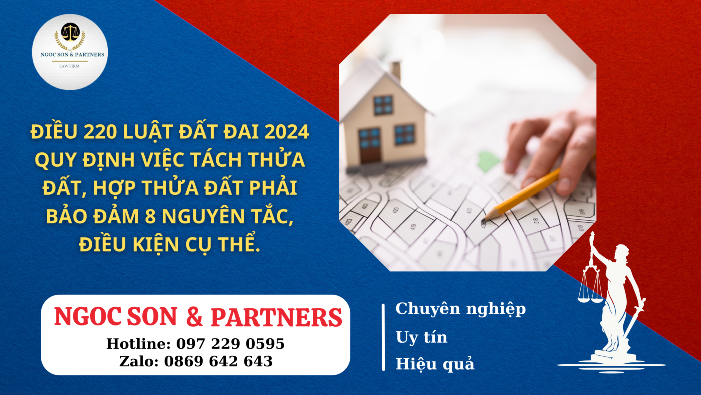 Cụ thể, Điều 220 quy định việc tách thửa đất, hợp thửa đất phải bảo đảm 8 nguyên tắc, điều kiện.
