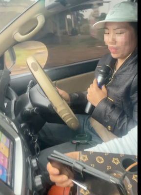 Theo clip, nữ tài xế dùng 1 tay cầm vô lăng, 1 tay cầm micro để hát, do không thuộc lời nên liên tục nhìn sang màn hình điện thoại do người phụ nữ ngồi ở ghế phụ cầm. Cũng theo clip, trên xe ô tô còn có 4-5 phụ nữ khác. Những người này không khuyên can mà vẫn cổ vũ cho hành động mất an toàn giao thông khi lái xe của nữ tài xế.